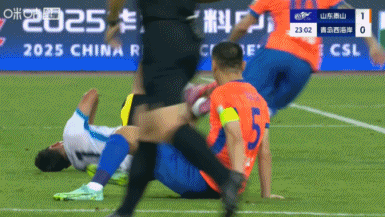 第32分钟,克雷桑凭借强悍的身体撞翻孙捷,裁判并没有吹犯规,邵佳一非常不满。